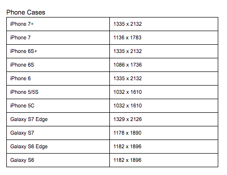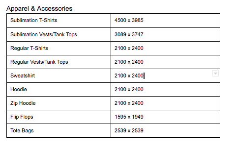 Take a look at the tables below to view the ideal resolutions for some popular POD products you can make with Kite: